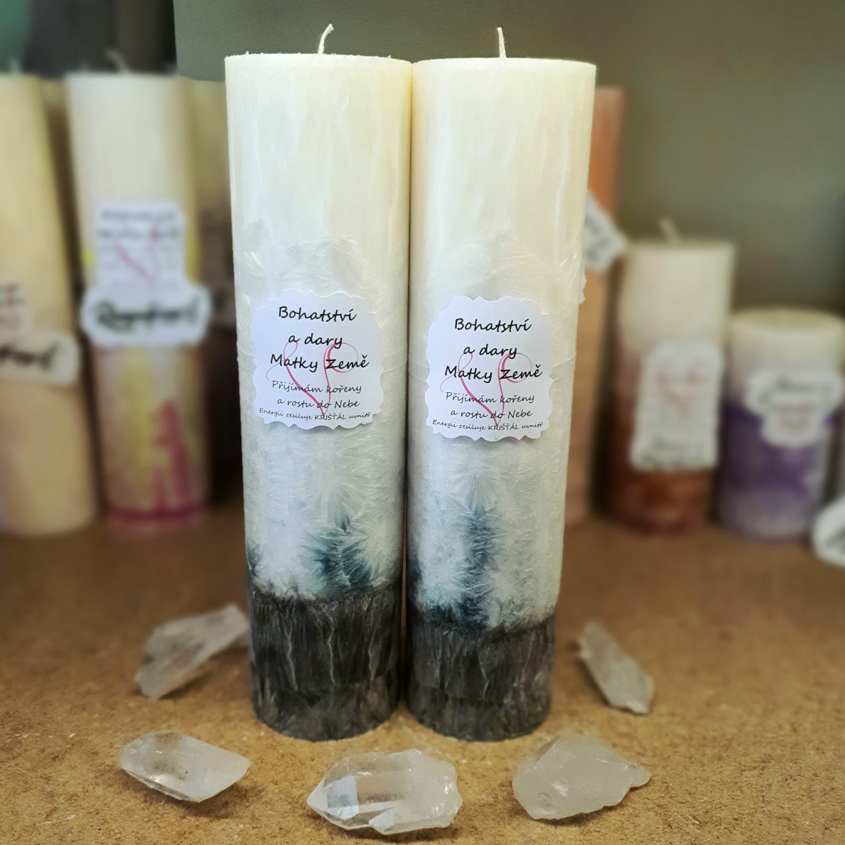 - Energetická svíčka s křišťálem z Úplňku BOHATSTVÍ A DARY MATKY ZEMĚ