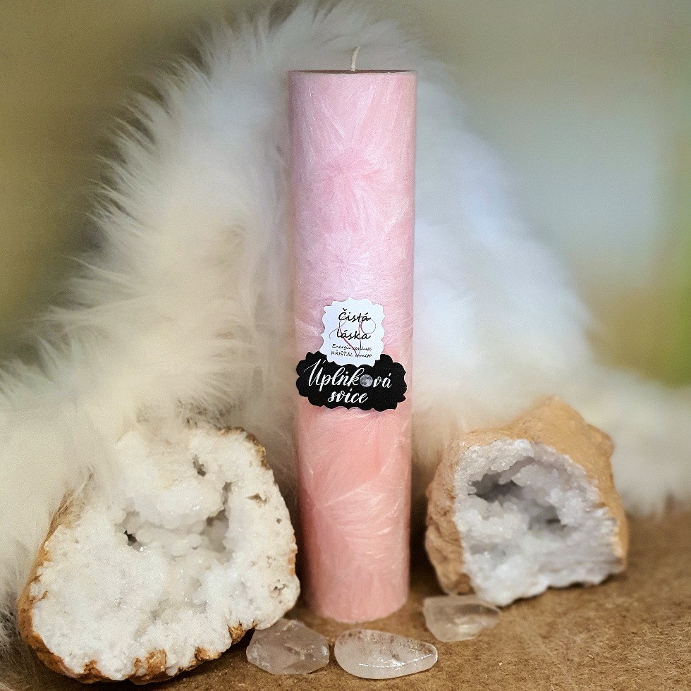 - Energetická svíčka s křišťálem z Úplňku ČISTÁ LÁSKA