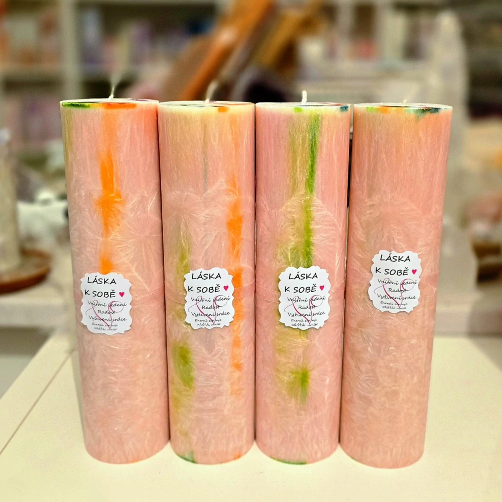 Tato nádherná něžná svíce je průvodcem na cestě k sobě samé, k sobě samému. Inspiruje a vede ke vnímání lásky, podporuje tím také sebehodnotu a naplňuje srdce jemnou, léčivou energií. Láska k sobě je esencí, která zve k přijetí své skutečné podstaty, opušťění minulosti a zanechání budoucnosti, neboť zve do přítomného okamžiku, k prožitku lásky teď a tady.