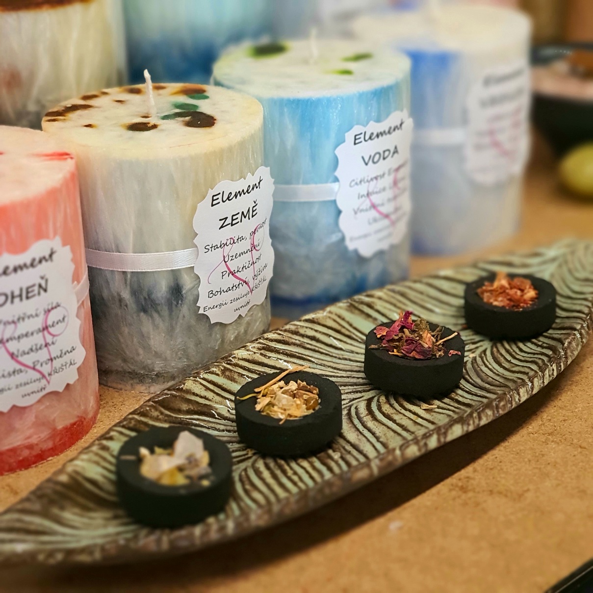 - Sada kadidel pro jednotlivé elementy vč. uhlíků