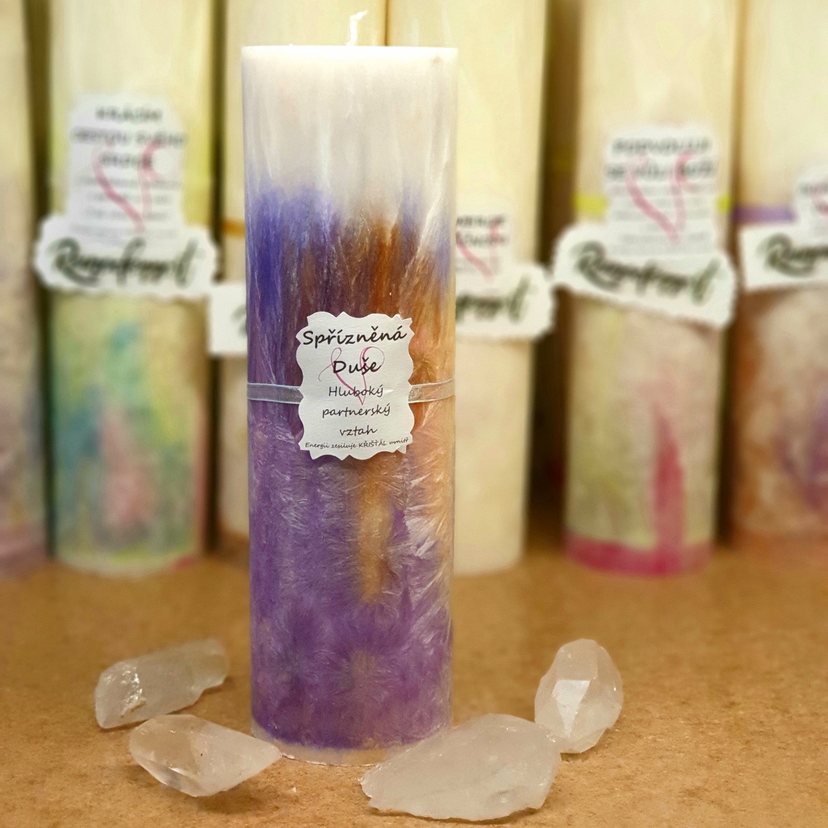 - Energetická svíčka s křišťálem SPŘÍZNĚNÁ DUŠE