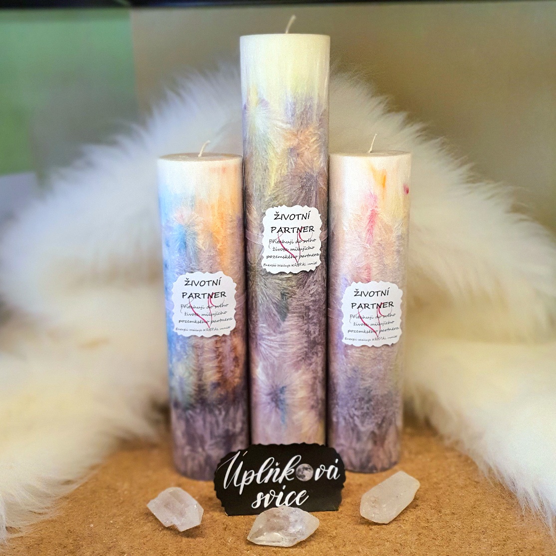- Energetická svíčka s křišťálem z Úplňku ŽIVOTNÍ PARTNER