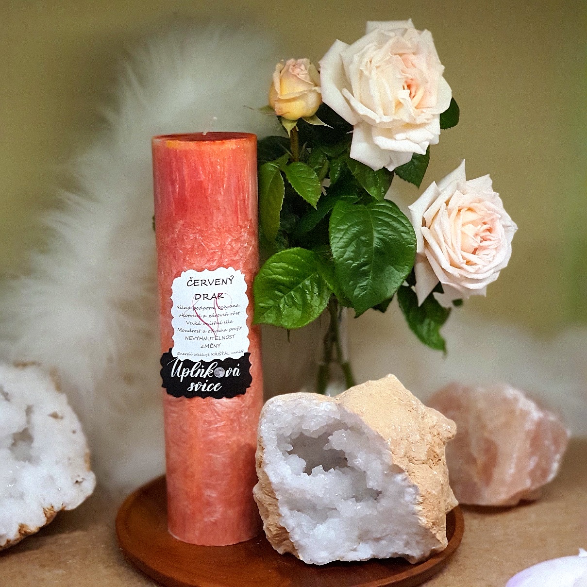 - Energetická svíčka s křišťálem z Úplňku ČERVENÝ DRAK