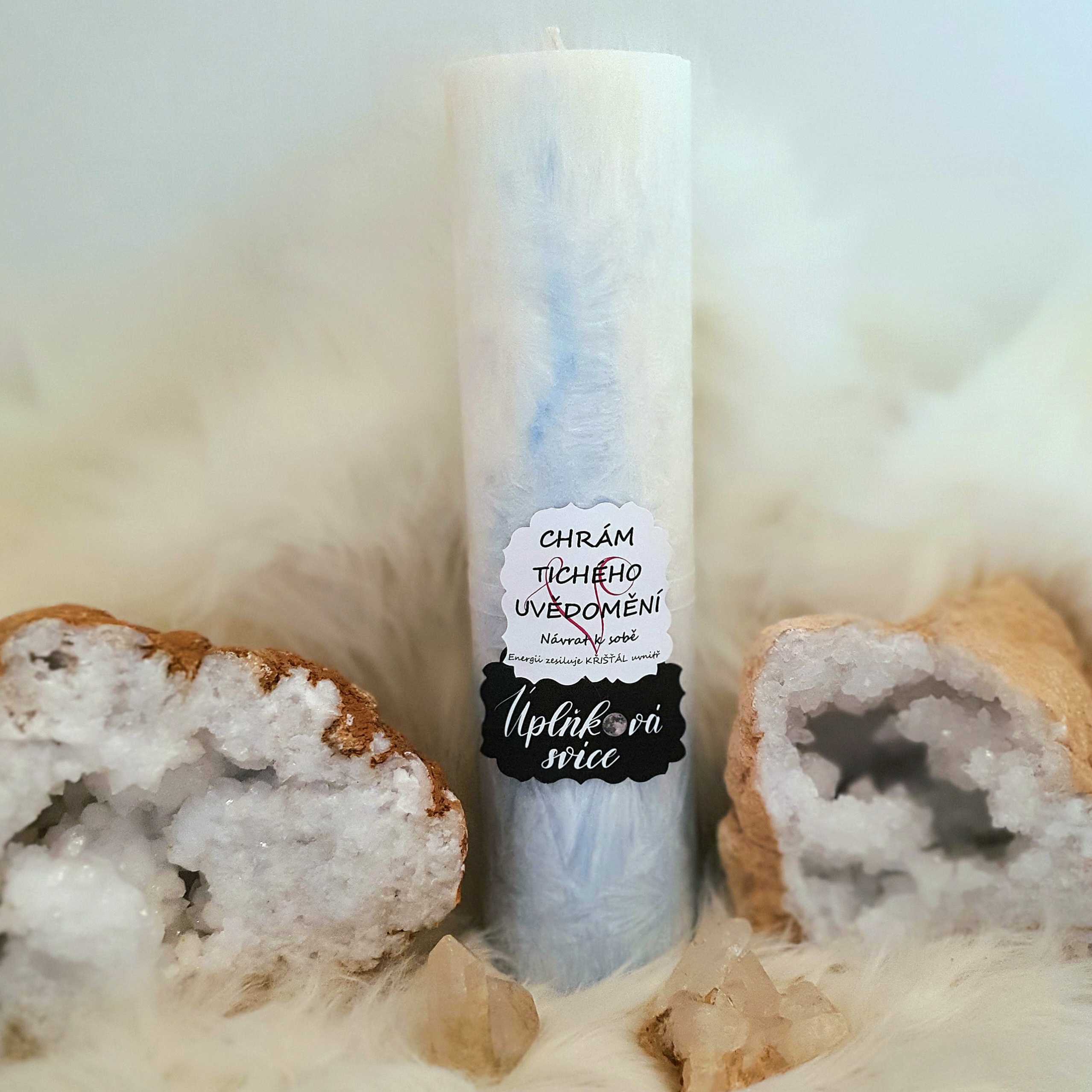 - Energetická svíčka s křišťálem z Úplňku CHRÁM TICHÉHO UVĚDOMĚNÍ
