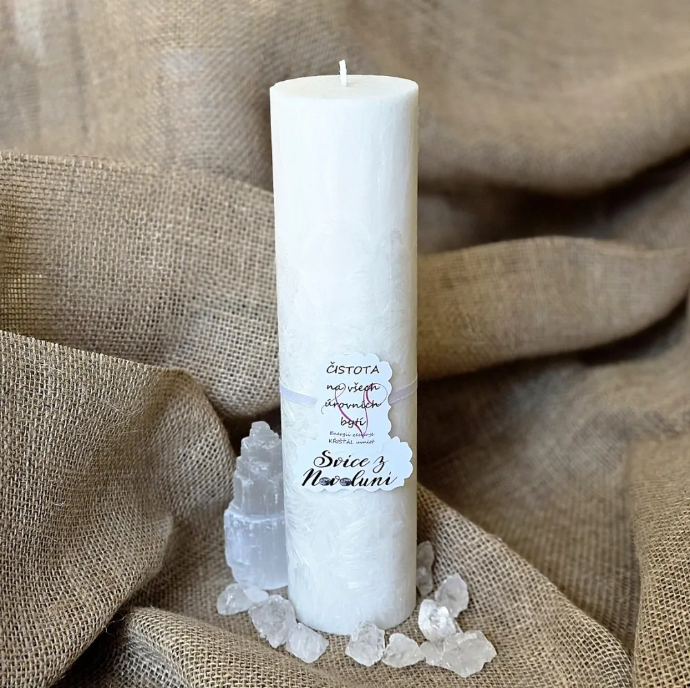 - Energetická svíčka s křišťálem z Novoluní ČISTOTA NA VŠECH ÚROVNÍCH BYTÍ