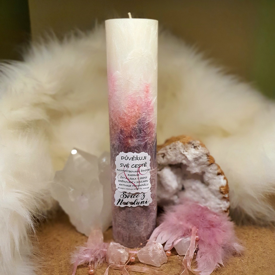- Energetická svíčka s křišťálem z Novoluní DŮVĚŘUJI SVÉ CESTĚ