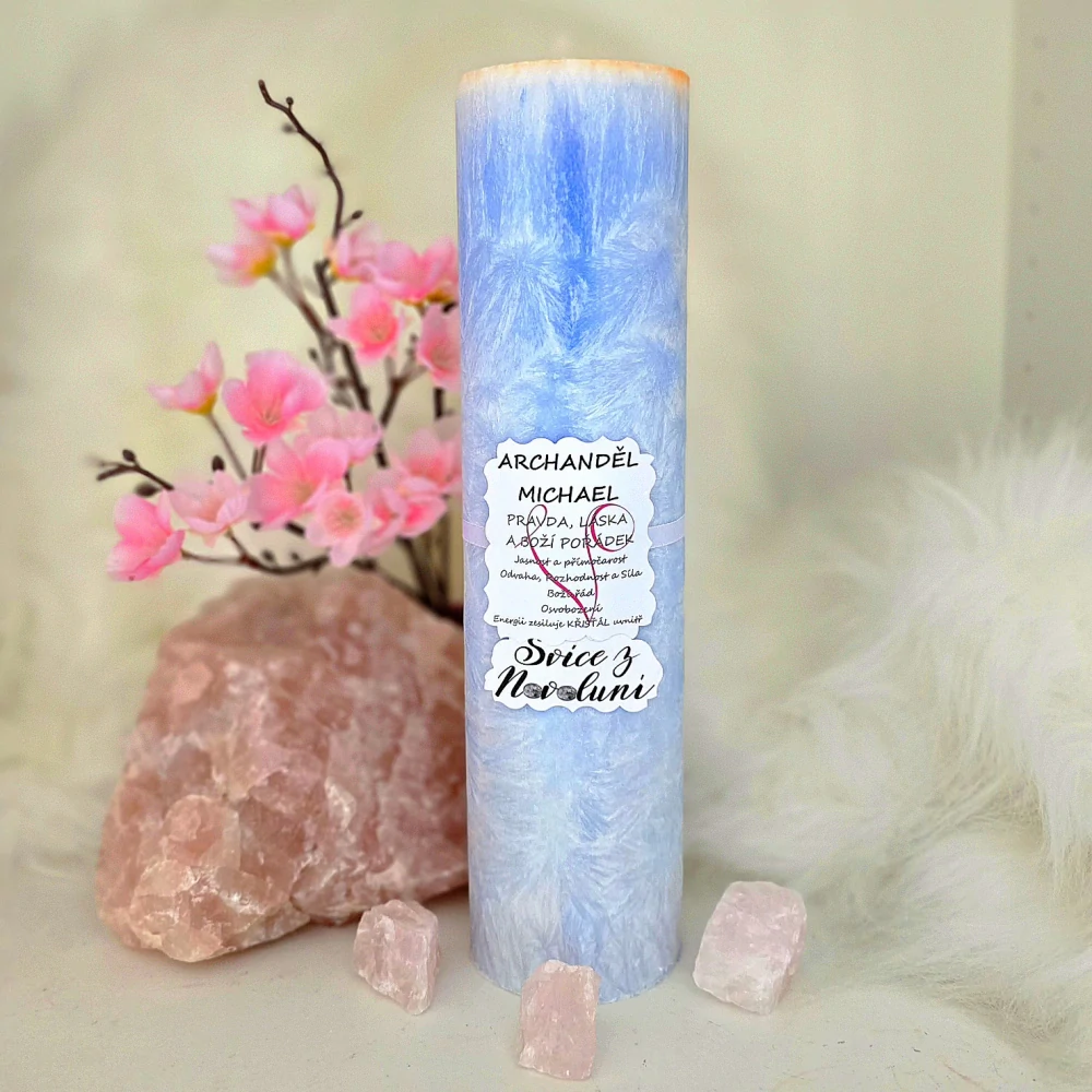 Uvnitř svíčky se nachází navibrovaný křišťál, který v sobě ukotvuje světelnou vibraci Michaela – posvátnou energii očisty, ochrany a vnitřního vedení. Po dohoření svíčky jej můžeš nosit jako osobní ochranný kámen nebo si jej ponechat na oltáři.