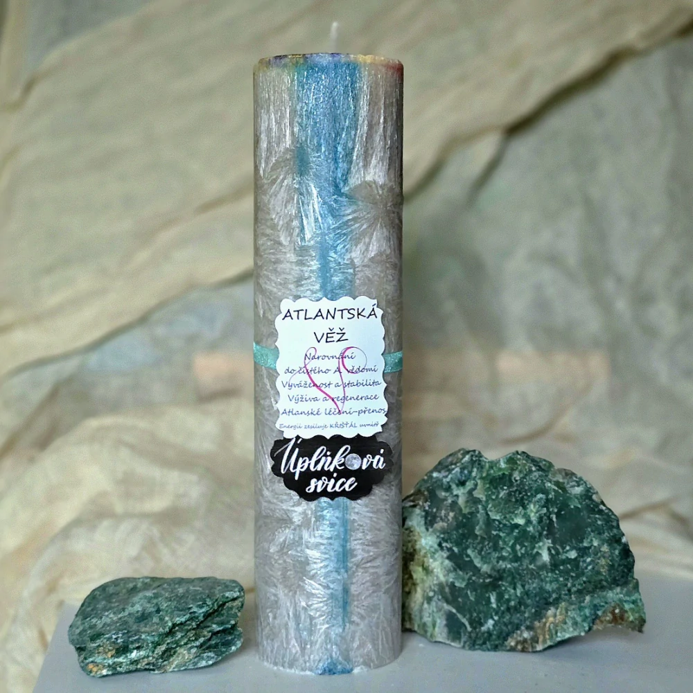 - Energetická svíčka s křišťálem z Úplňku - ATLANTSKÁ VĚŽ