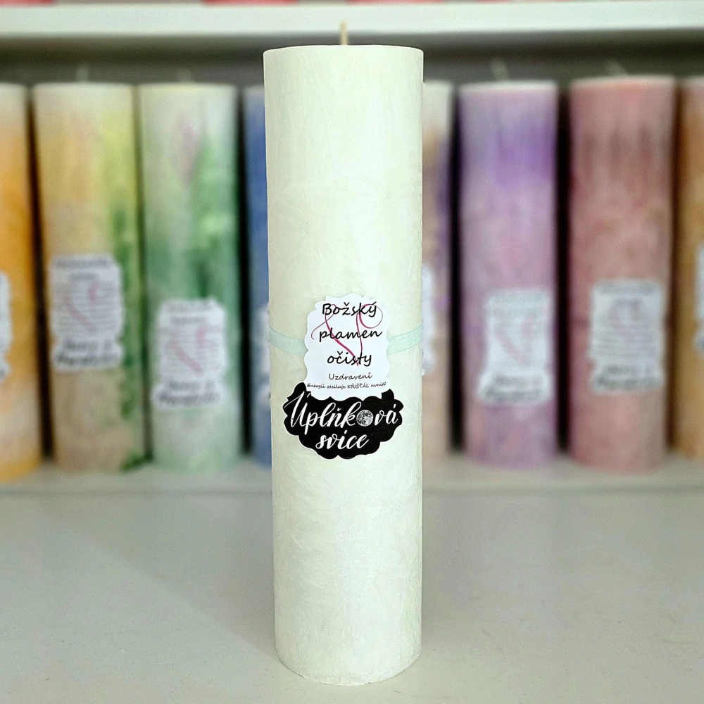 Energetická svíčka s křišťálem z Úplňku BOŽSKÝ PLAMEN OČISTY