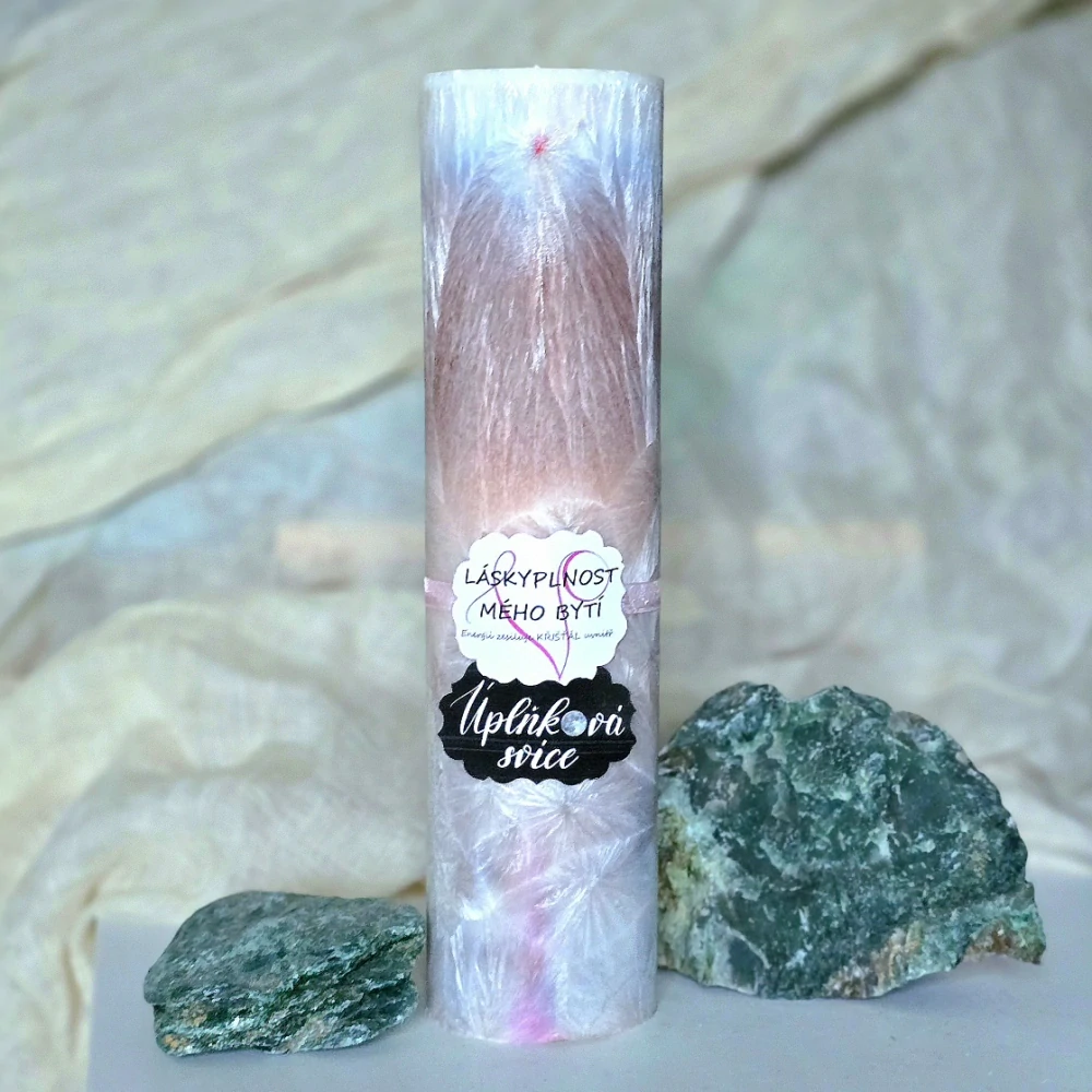 Energetická svíčka s křišťálem z Úplňku - LÁSKYPLNOST MÉHO BYTÍ