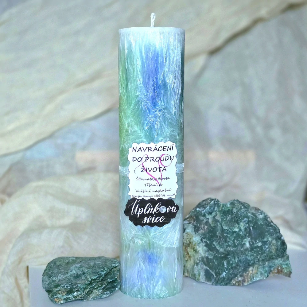 Energetická svíčka s křišťálem z Úplňku - NAVRÁCENÍ DO PROUDU ŽIVOTA