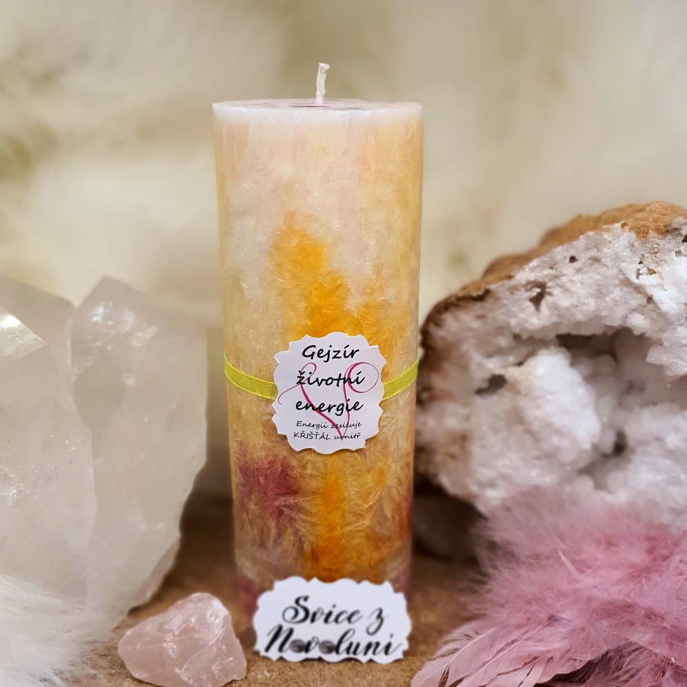 - Energetická svíčka s křišťálem z Novoluní GEJZÍR ŽIVOTNÍ ENERGIE