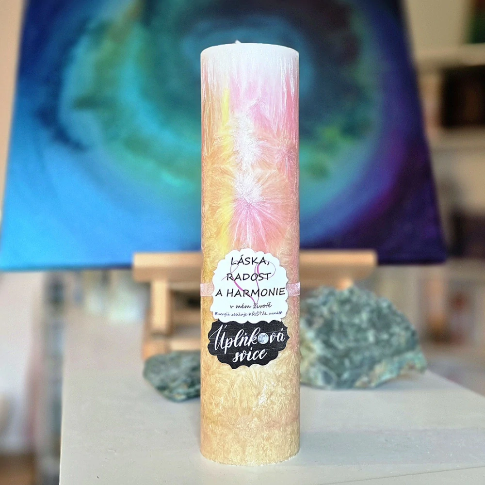 - Energetická svíčka s křišťálem z Úplňku LÁSKA, RADOST A HARMONIE
