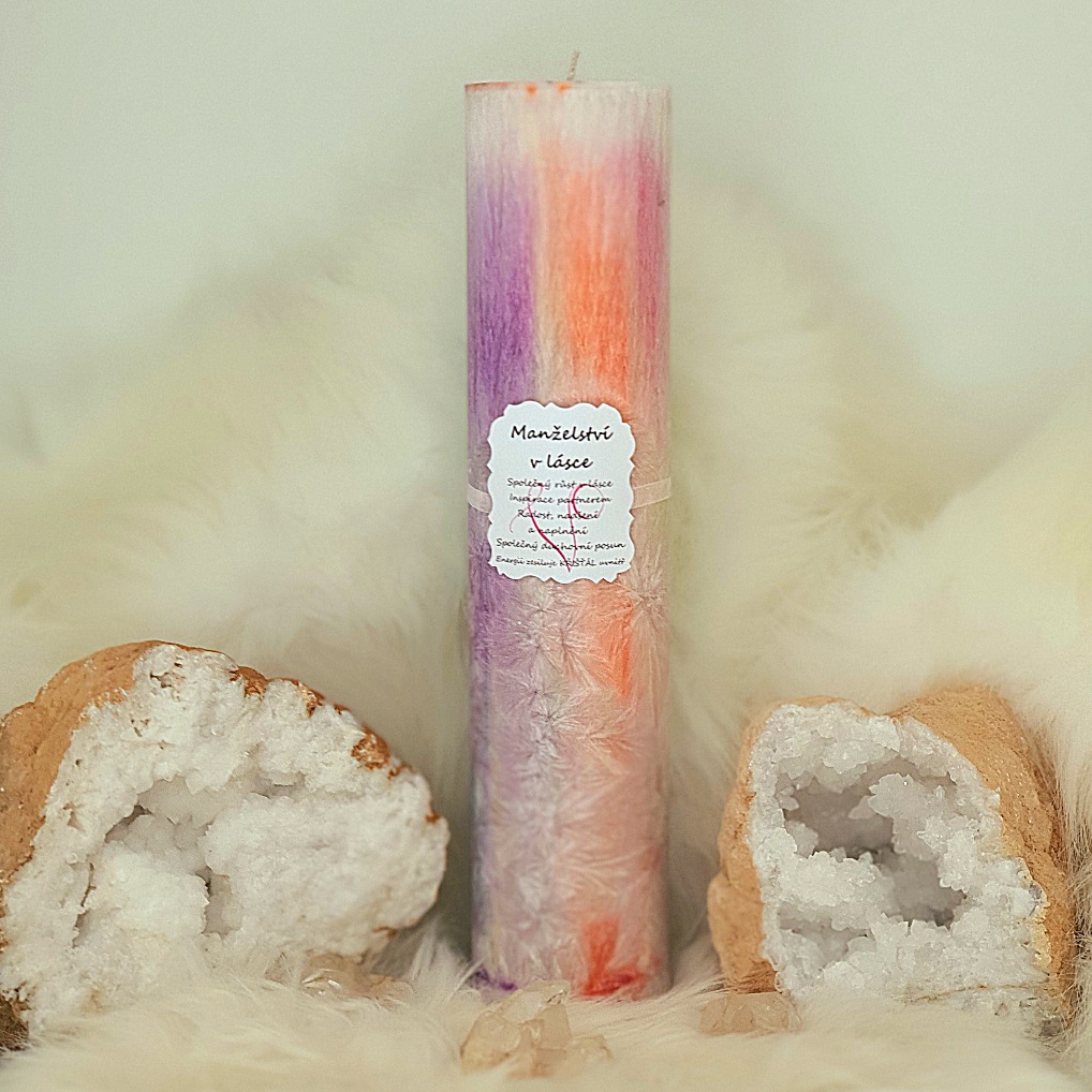 - Energetická svíčka s křišťálem MANŽELSTVÍ V LÁSCE
