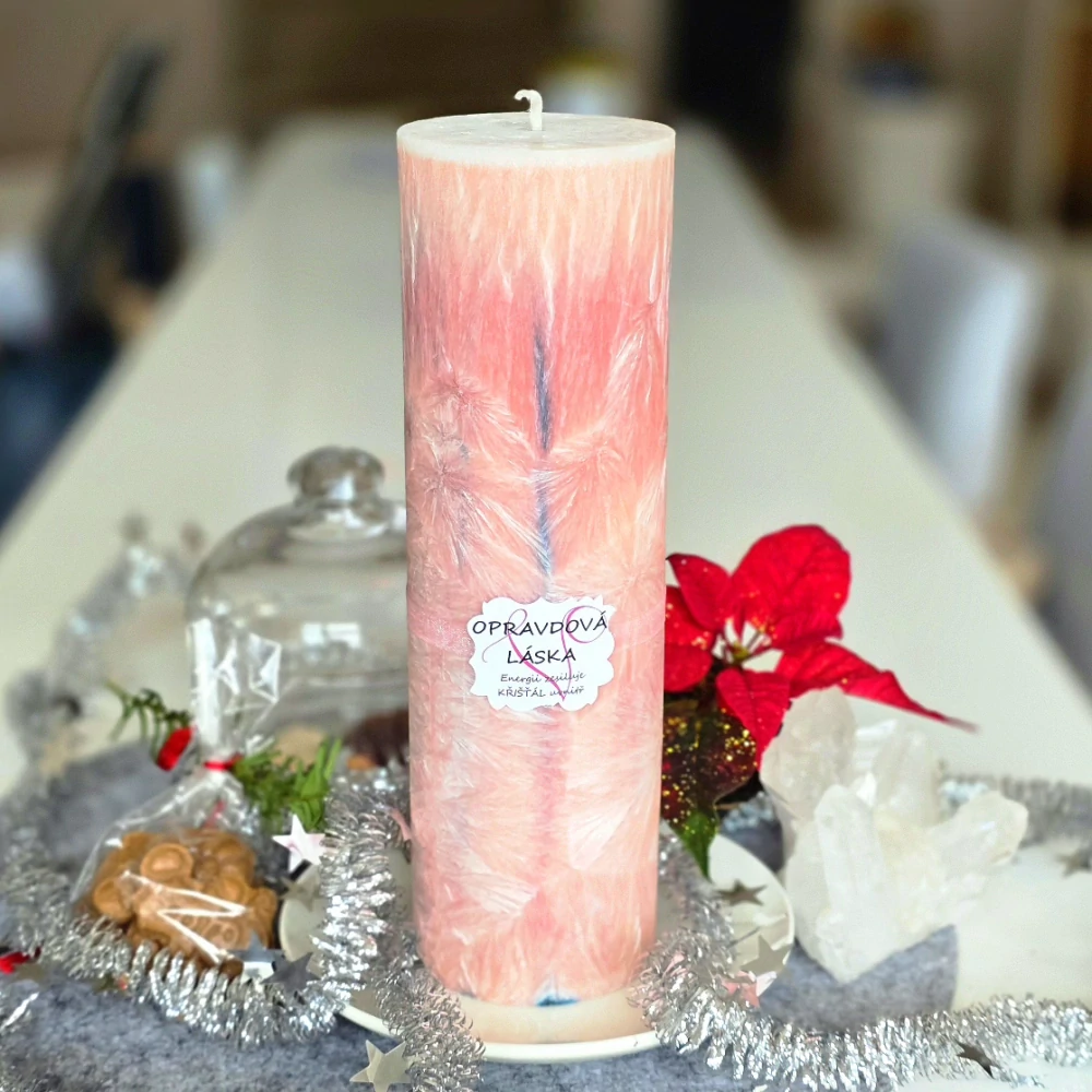 - Energetická svíčka s křišťálem OPRAVDOVÁ LÁSKA