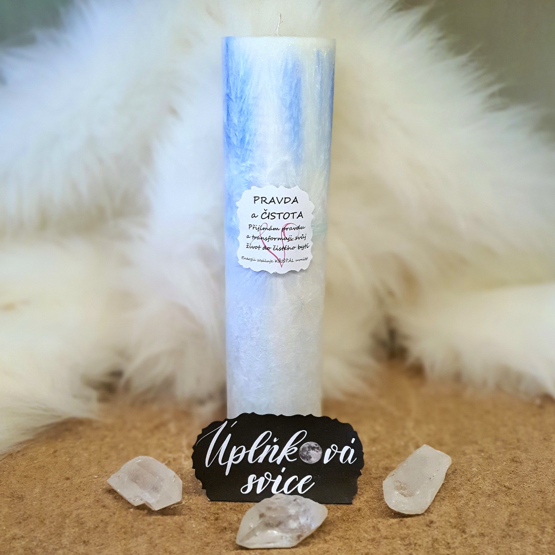 - Energetická svíčka s křišťálem z Úplňku PRAVDA A ČISTOTA