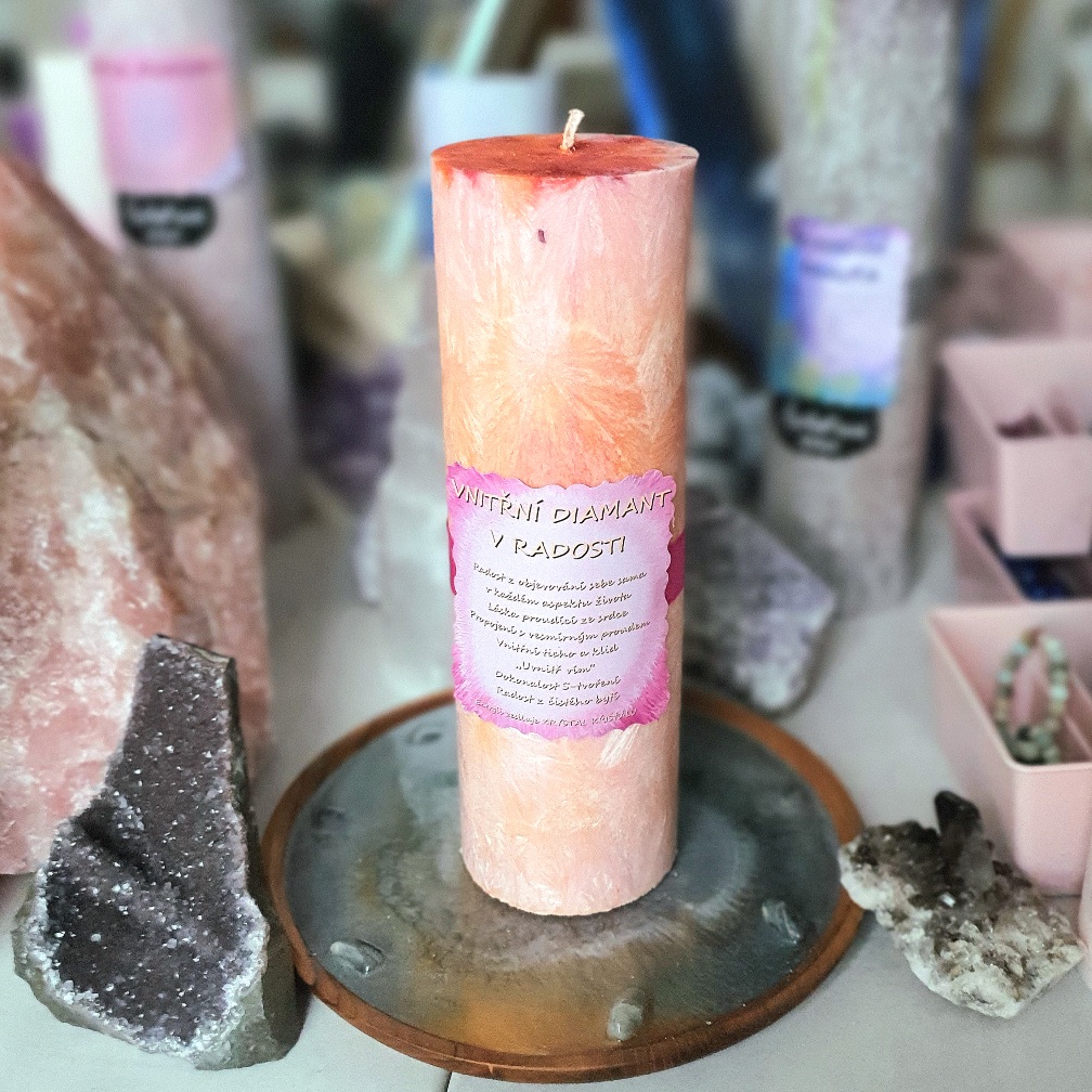 - Energetická svíčka s křišťálem MAXI - VNITŘNÍ DIAMANT V RADOSTI radosti