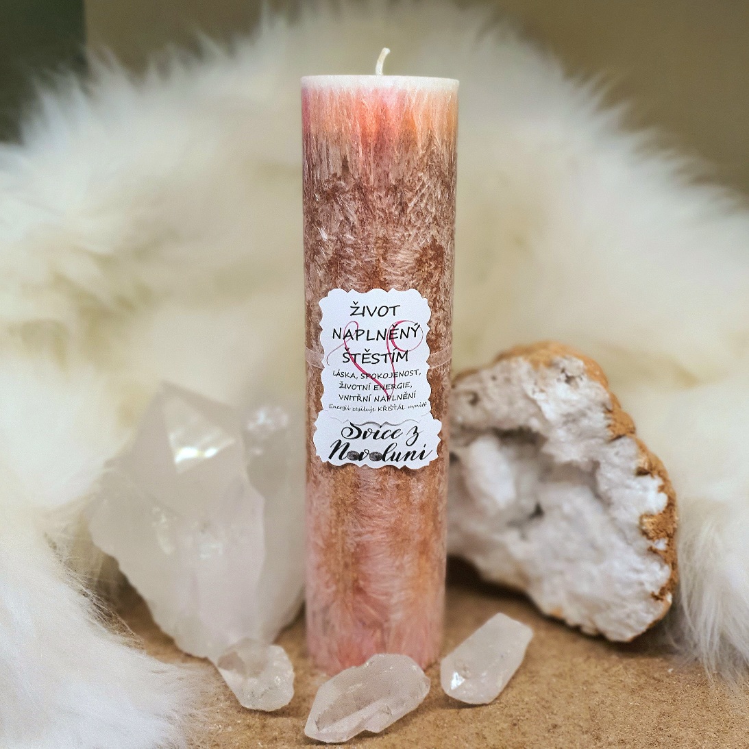 - Energetická svíčka s křišťálem z Novoluní - ŽIVOT NAPLNĚNÝ ŠTĚSTÍM